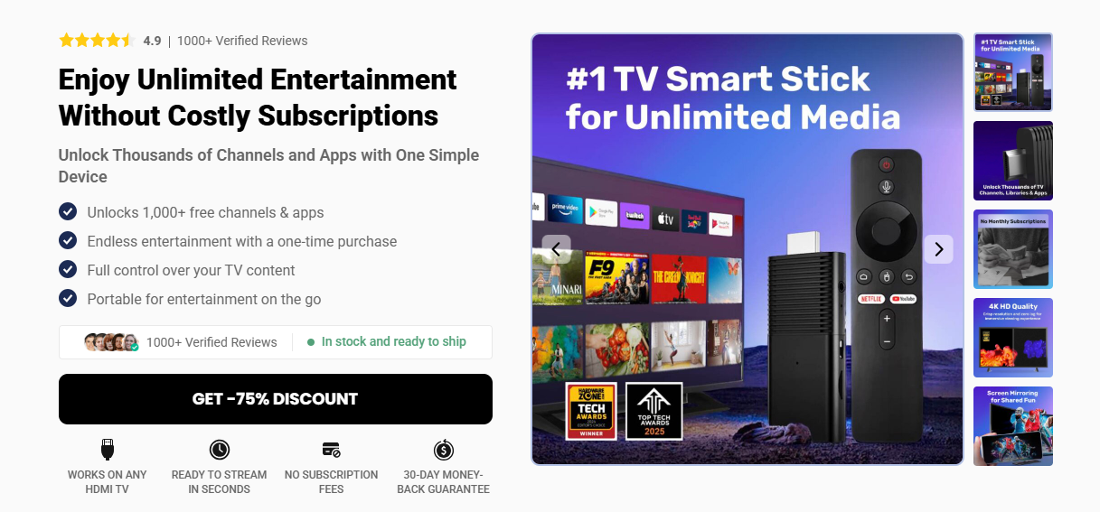 One of the stick’s biggest selling points in the U.S. market is its speed. Thanks to its optimized processor and lightweight operating system, navigating menus and switching between apps feels fluid and responsive. Many users appreciate that it boots quickly and avoids the sluggishness often experienced with older smart TVs. Whether watching movies in HD or catching up on live events, the Flixy TV Smart Stick keeps performance smooth and consistent.